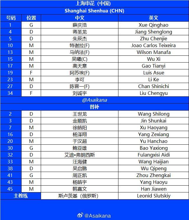 申花vs蔚山:双方均三外援,李可、高天意首发,刘诚宇出战