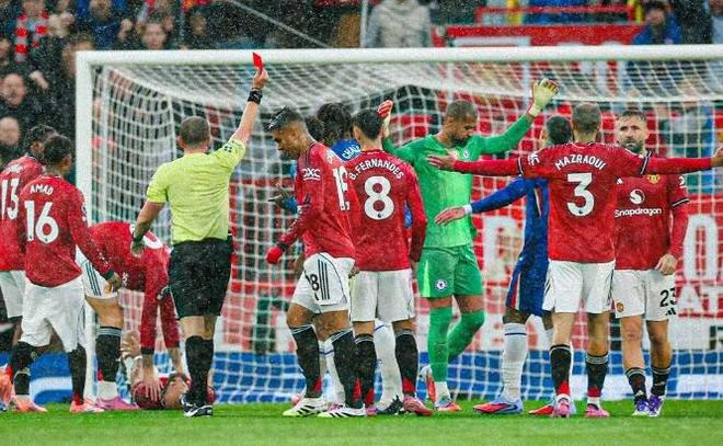 在曼联2-1战胜切尔西的比赛中,冲出禁区的桑切斯放倒了姆伯莫,随后因破坏明显进球机会被红牌罚下。