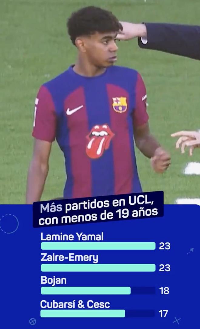 若出战巴黎,亚马尔将成为19岁之前欧冠出场次数最多的球员